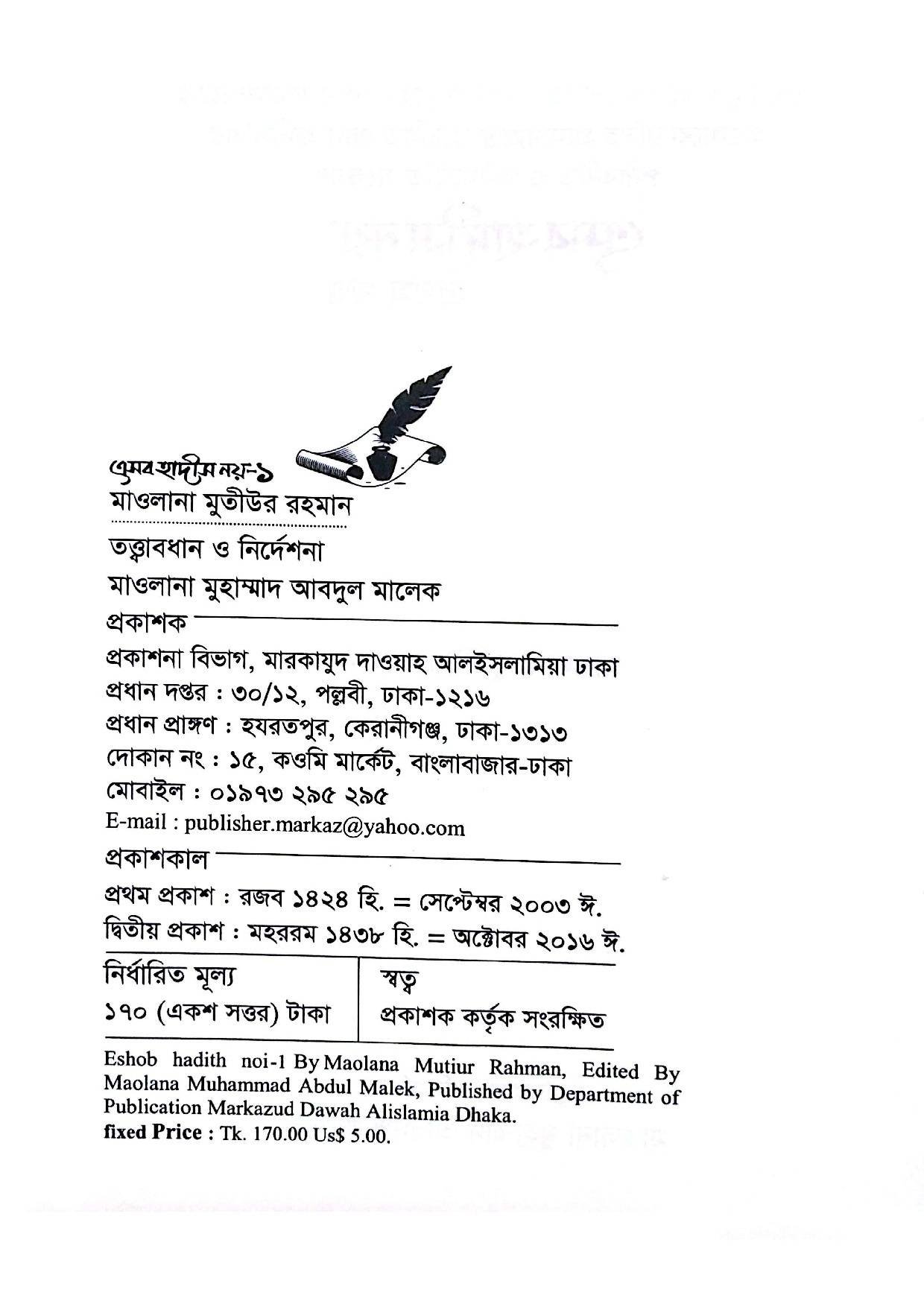 সমাজের প্রচলিত ভুল, জাল হাদীস আর বিভ্রান্তি থেকে বাঁচতে জাতীয় মসজিদ বাইতুল মোকাররমের সম্মানিত খতীব মাওলানা মুহাম্মাদ আব্দুল মালেক হাফি. এর নির্ভরযোগ্য চারটি বই এখন একসাথে।