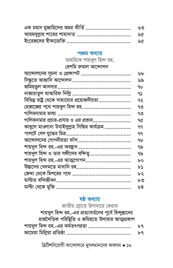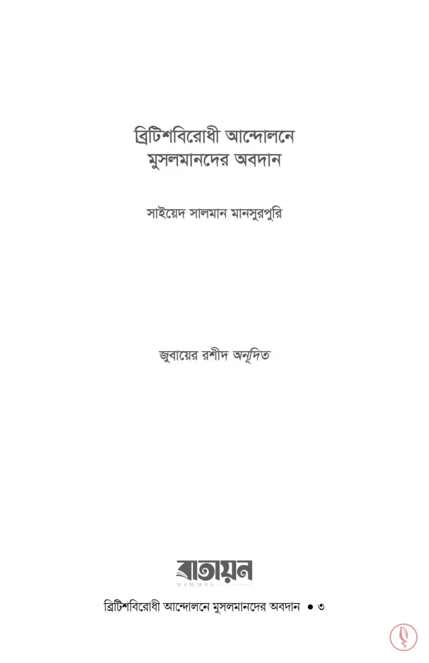 হিন্দুস্তান ব্রিটিশ আগ্রাসনের আগে ও পরে: সাইয়েদ হুসাইন আহমদ মাদানী রহ. মুদ্রিত মূল্য: 250 টাকা পৃষ্ঠা: 160 ইংরেজদের আগমনের পর থেকেই মুসলমানরা তাদের বিরুদ্ধে তৎপর ছিল। লড়াই করে গিয়েছে প্রতিটি আন্দোলন-সংগ্রামে। কিন্তু তাদের সেই বিপ্লবী জীবনকে মুছে ফেলতে চেয়েছে মুসলিমবিরোধী তথাকথিত ঐতিহাসিকরা। মুসলমানদের অবদান স্মরণ করিয়ে দেবে ‘ব্রিটিশবিরোধী আন্দোলনে মুসলমানদের অবদান’ বইটি।